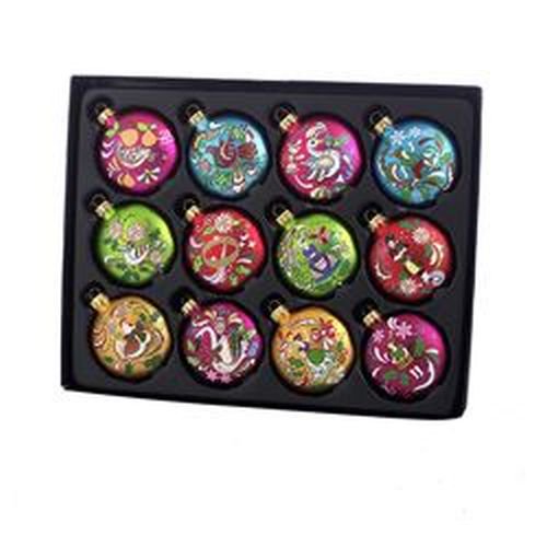 65 Mm 12 Piece Set 12 Days Of Christmas Glass Multi Color Disc Ornaments Walmart Com