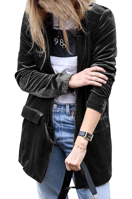 Amazon Com Womens Velvet Long Sleeve Pocket Casual Open Front Lapel Collar Cardigan Outwear Long Velvet Blazers Coat Casual Jackets Yellow Small Clothing Shoes Jewelry